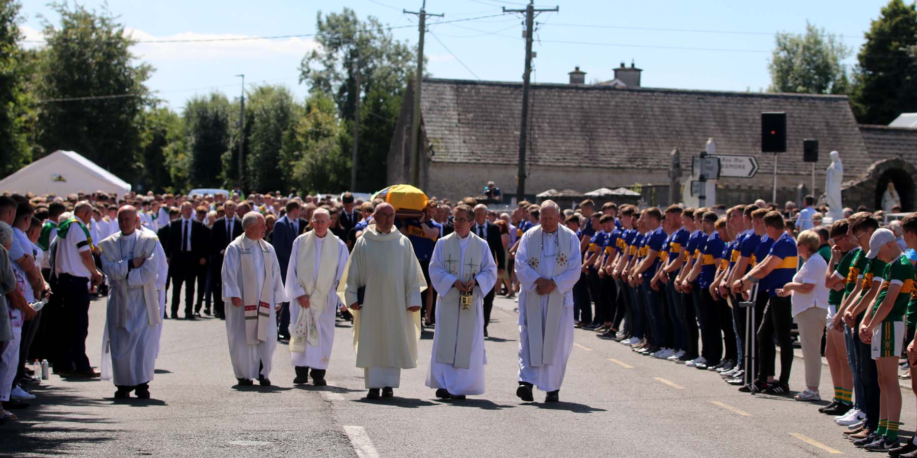 Frs Mattie McGrath, Celsus Tierney, Tom Ahearn, Tom Ryan, Tom Dunne and Joe Egan lead the funeral procession as Requiem Mass.