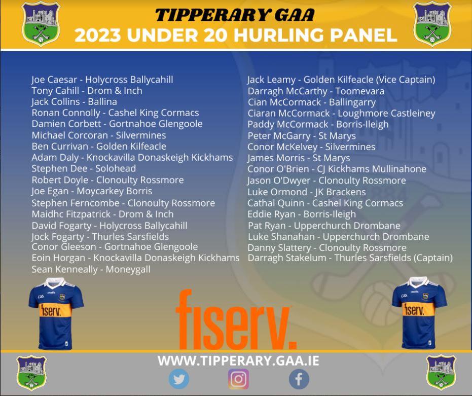 Thurles Sarsfields man Darragh Stakelum has been named as team captain for the year, while Jack Leamy of Golden Kilfeacle will be vice-captain of what looks to be a strong looking panel of players.