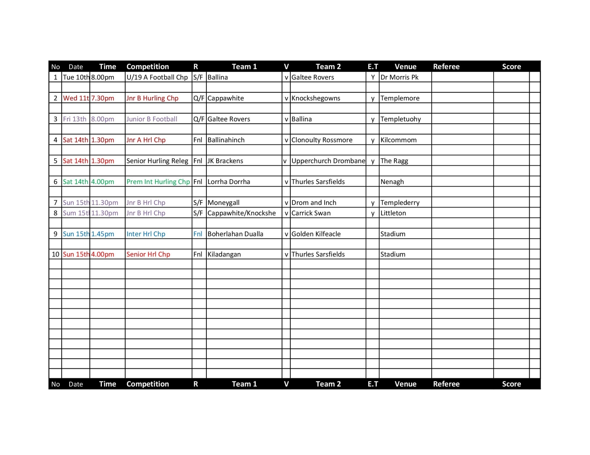 The fixtures are out for next weekend in the Tipperary GAA hurling nd football championships.