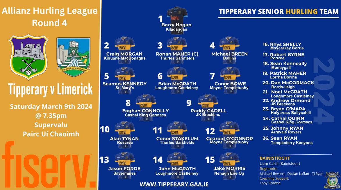 Liam Cahill has named a strong looking Tipperary team for this Saturday's National Hurling League round 4 clash with Limerick in Pairc Ui Chaoimh.