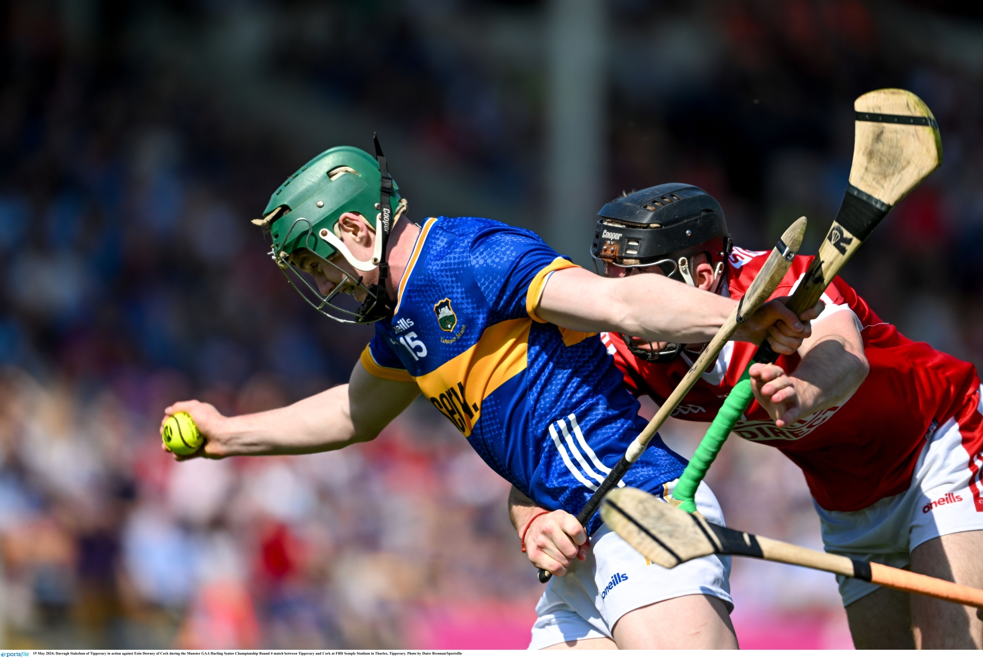 Darragh Stakelum of Tipperary in action against Eoin Downey of Cork