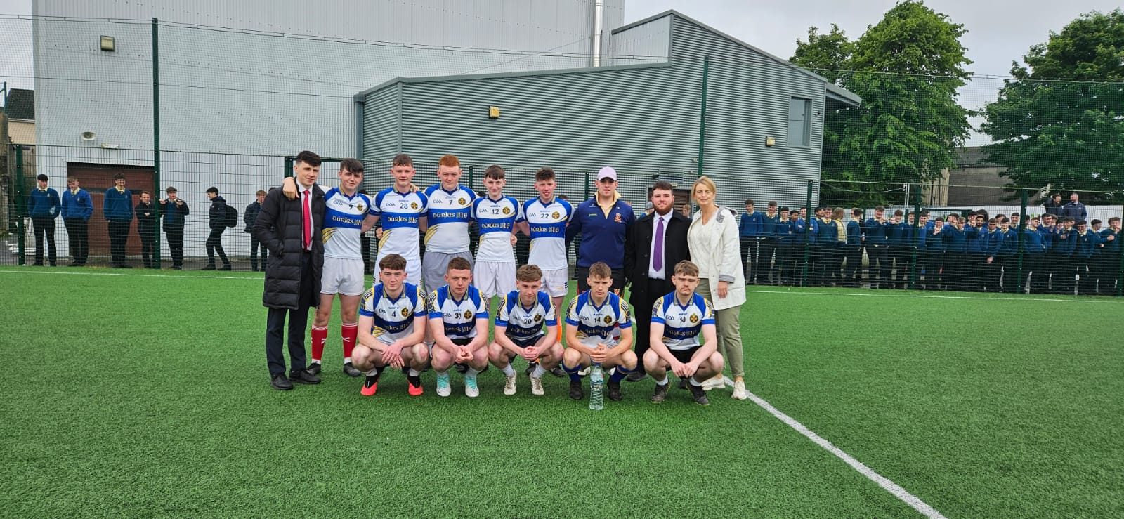 The students hit the post through Mikey Carroll and eventually got a goal back through Mikie Lawlor. Mr Downey rattled the crossbar late on with a great effort.