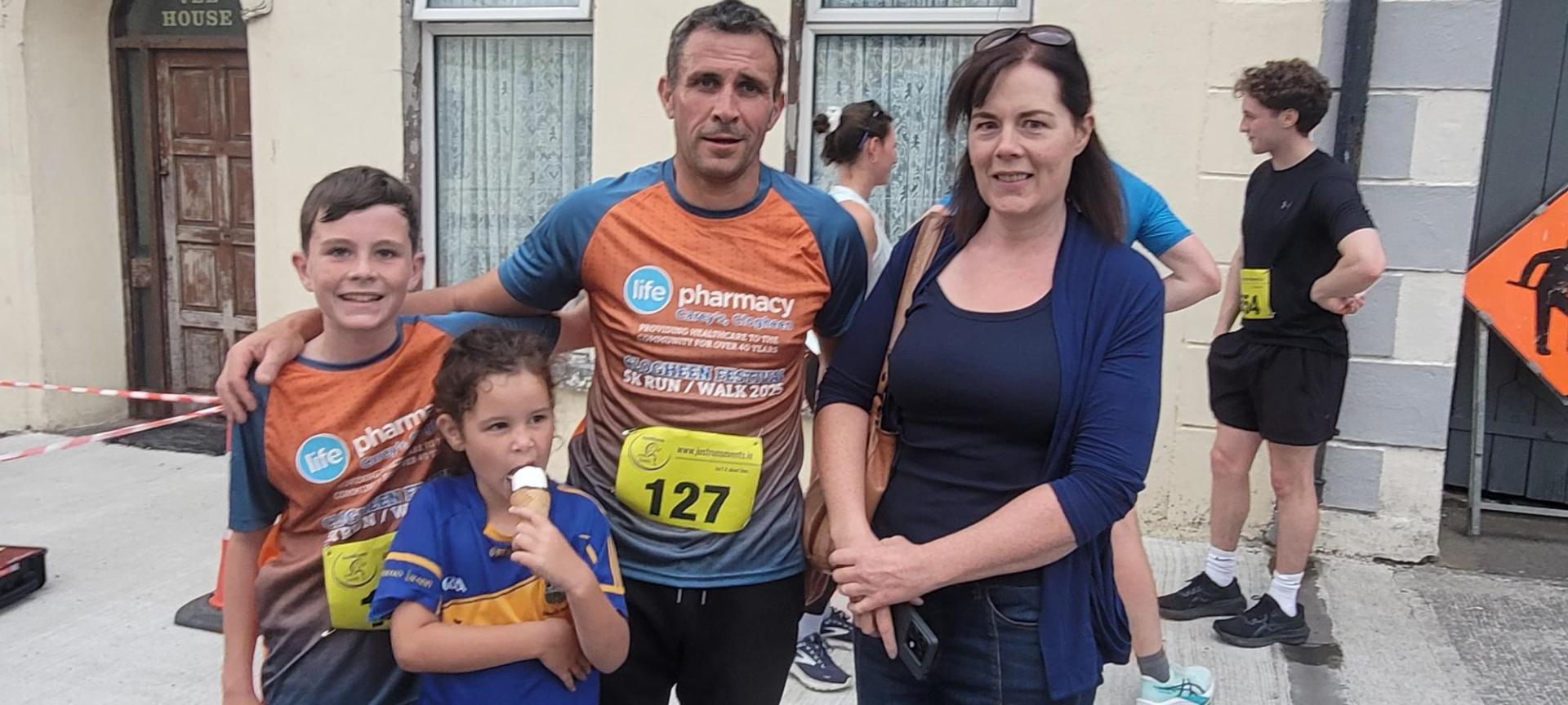 The McGrath Family Shanbally Clogheen greeting Lawrence at the finish line of the Clogheen 5K. Over 220 people participated in the 5K on Thursday July 31 which was part of the line up for the Clogheen Bank Holiday Festival. Well done to all the participants.