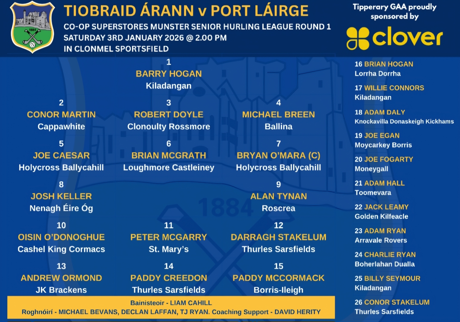 Liam Cahill has announced his first starting 15 of 2026 ahead of Saturday's Munster Hurling League opener against Waterford in Clonmel.