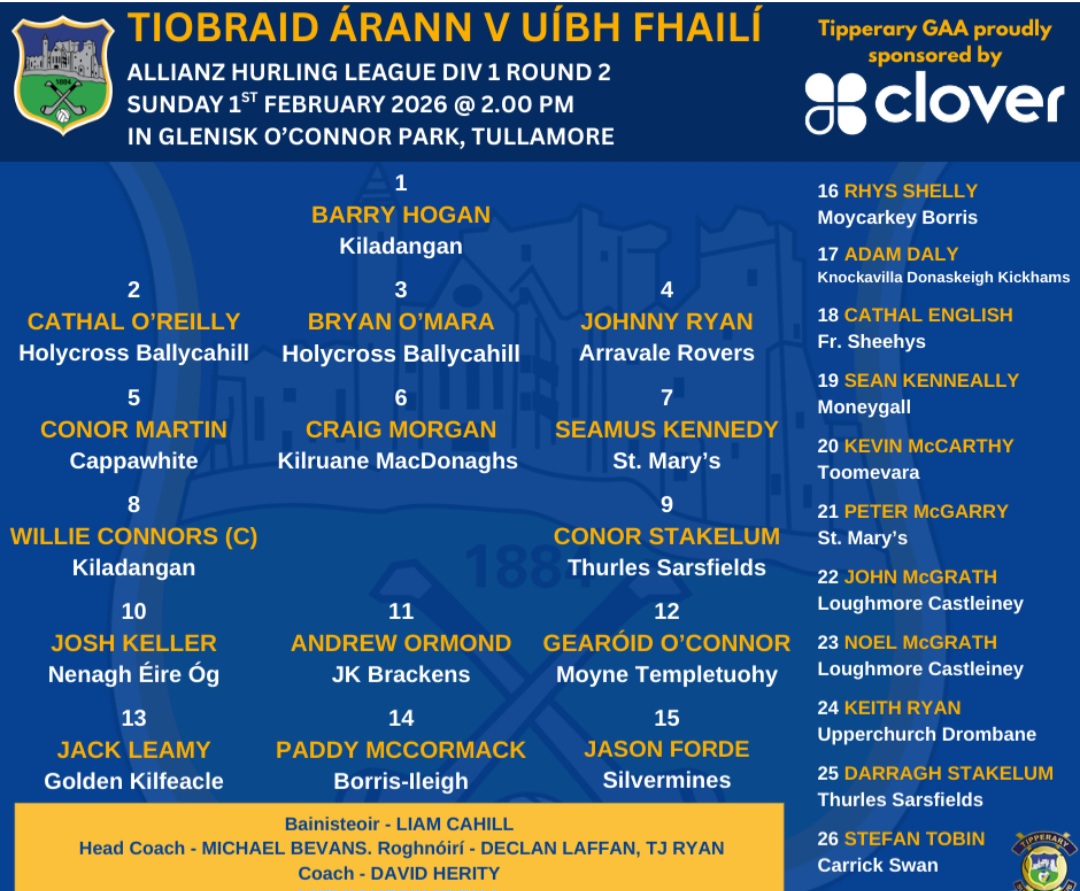 There are some interesting inclusions on the bench too, with Noel and John McGrath lining out for the first time this term, while Kevin McCarthy, Keith Ryan, Cathal English and Adam Daly could be in line to make their senior debuts.