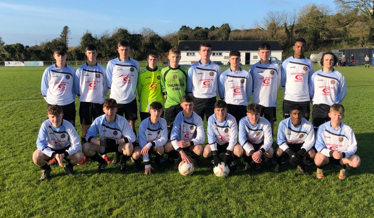 Thurles CBS U19 Soccer team had a convincing win over a strong Cashel Community School side in Round 2 of the Munster Senior Cup. Goals from Michael Anthony McCarthy(2) and Donnacha Troy ensured that CBS won out three nil. A solid team performance, especially in the second half, was key to securing the win. We now await the draw for the last 16.