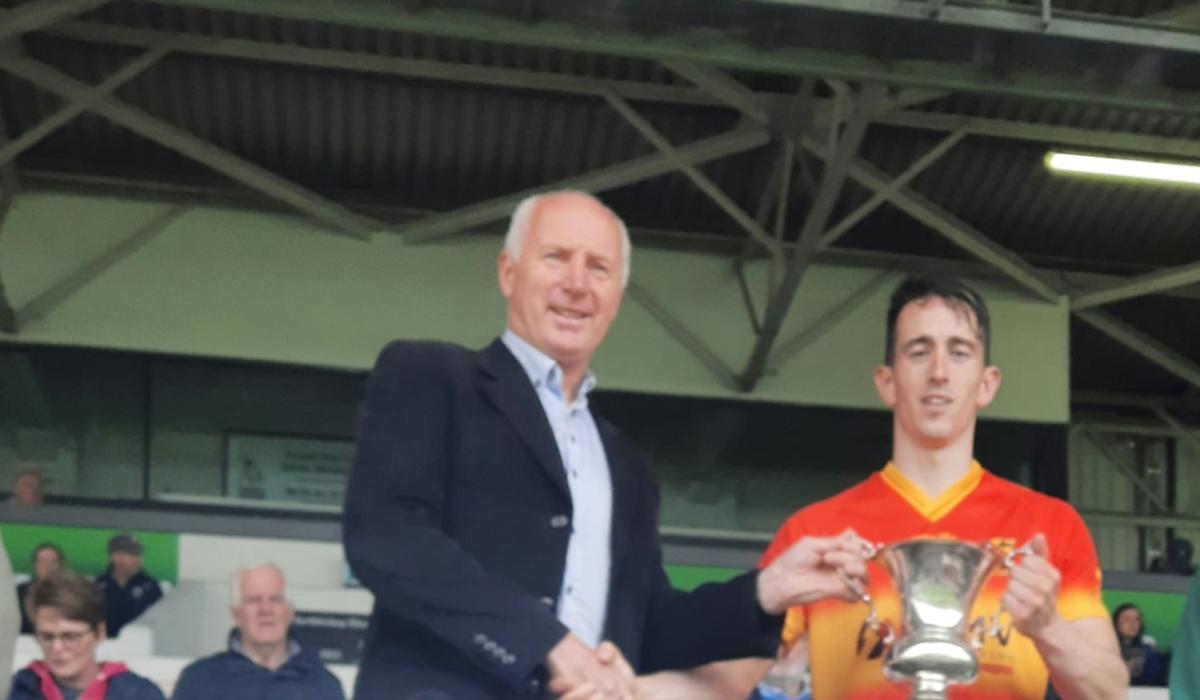 Pat Molloy, Moycarkey Borris captain receives the Jim Devitt Cup from Joe Kennedy, County GAA Board chairman