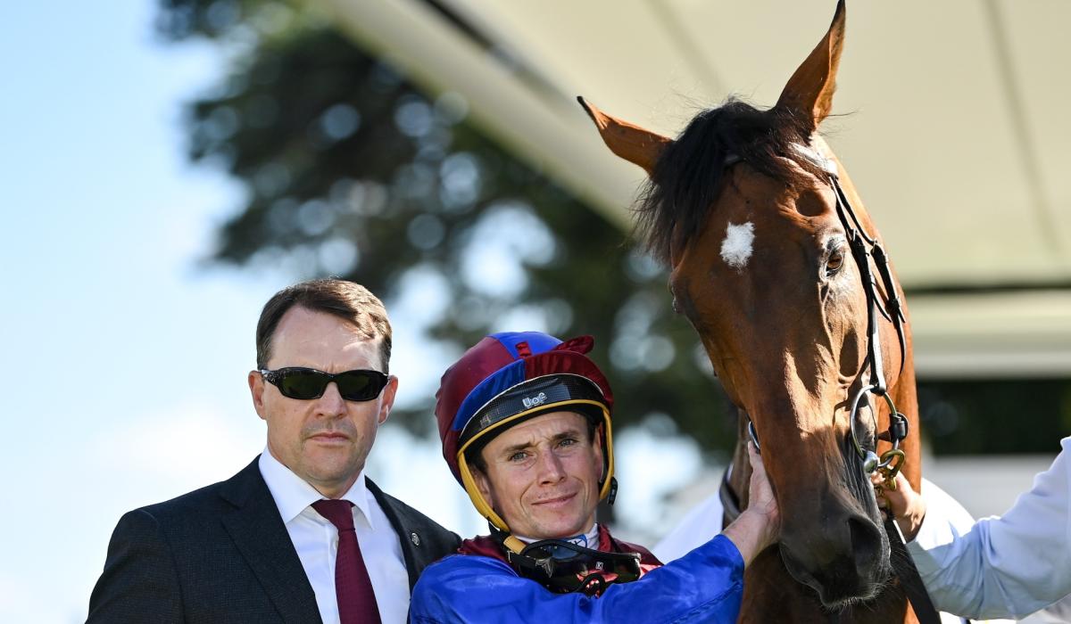 Jockey Ryan Moore, with trainer Aidan O'Brien and Luxembourg, after winning the Royal Bahrain Irish Champion Stakes at the Longines Irish Champions Weekend. Picture: Seb Daly/Sportsfile