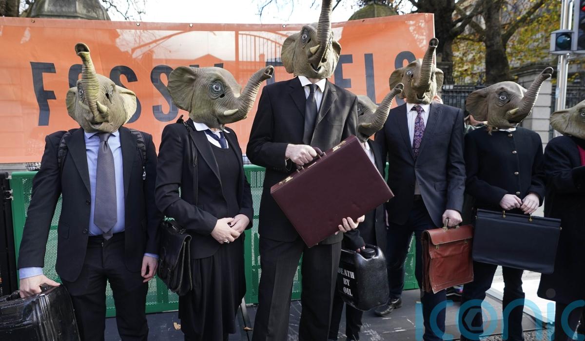 People dressed in elephant masks and suits as they called for Ireland to switch away from its dependence on fossil fuels without exacerbating the lives of those who are already struggling to pay electricity bills.