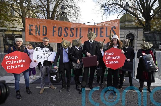 Climate protesters have gathered outside Leinster House in Dublin ahead of a major environmental conference in the United Arab Emirates.