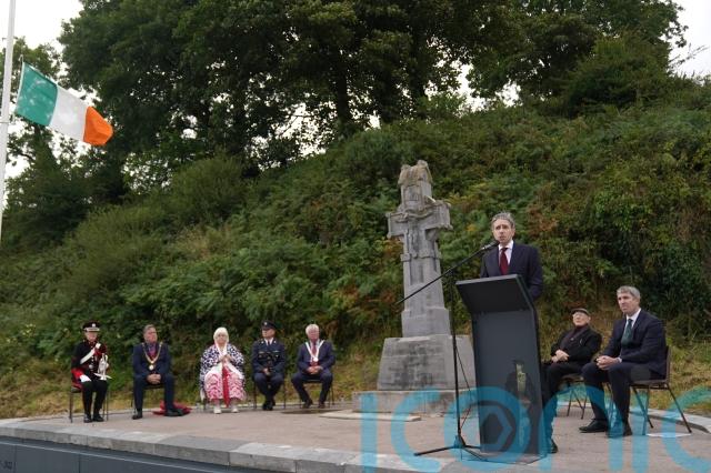 Taoiseach Simon Harris has criticised attempts to silence elected politicians through violence and intimidation at a ceremony marking the death of Michael Collins.