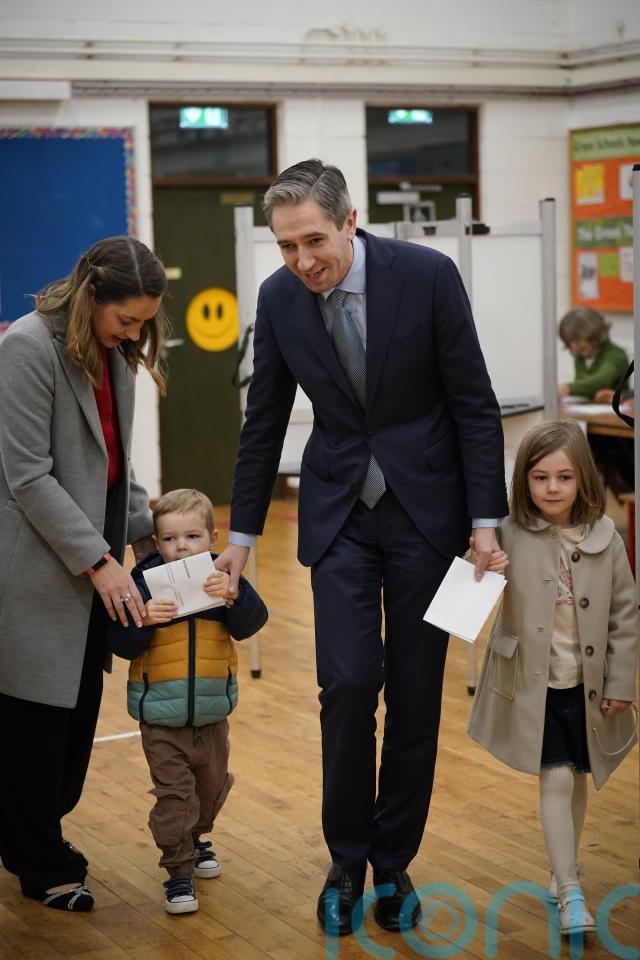 The Fine Gael leader arrived at the polling station at Delgany National School in Co Wicklow just before 7.30am with his wife Caoimhe and their children, Saoirse, five, and Cillian, three.