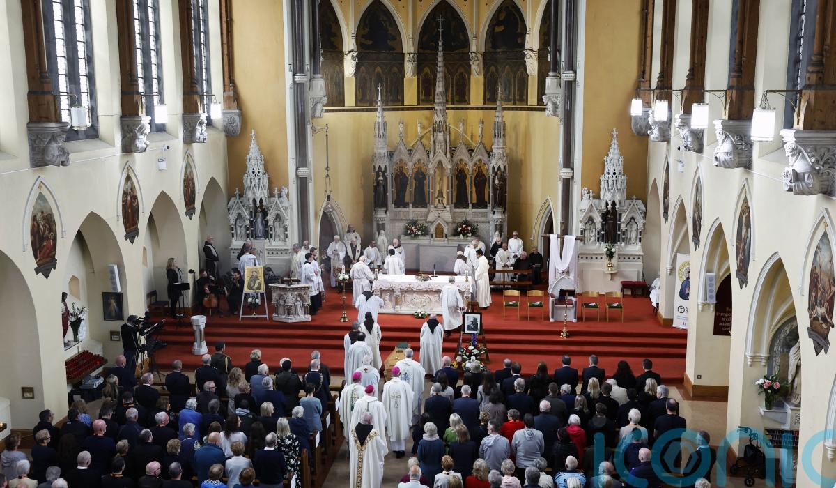 President Michael D Higgins and his wife Sabina Higgins were among guests in an “overflowing” church, which the service heard was receiving guests from all over the island of Ireland.