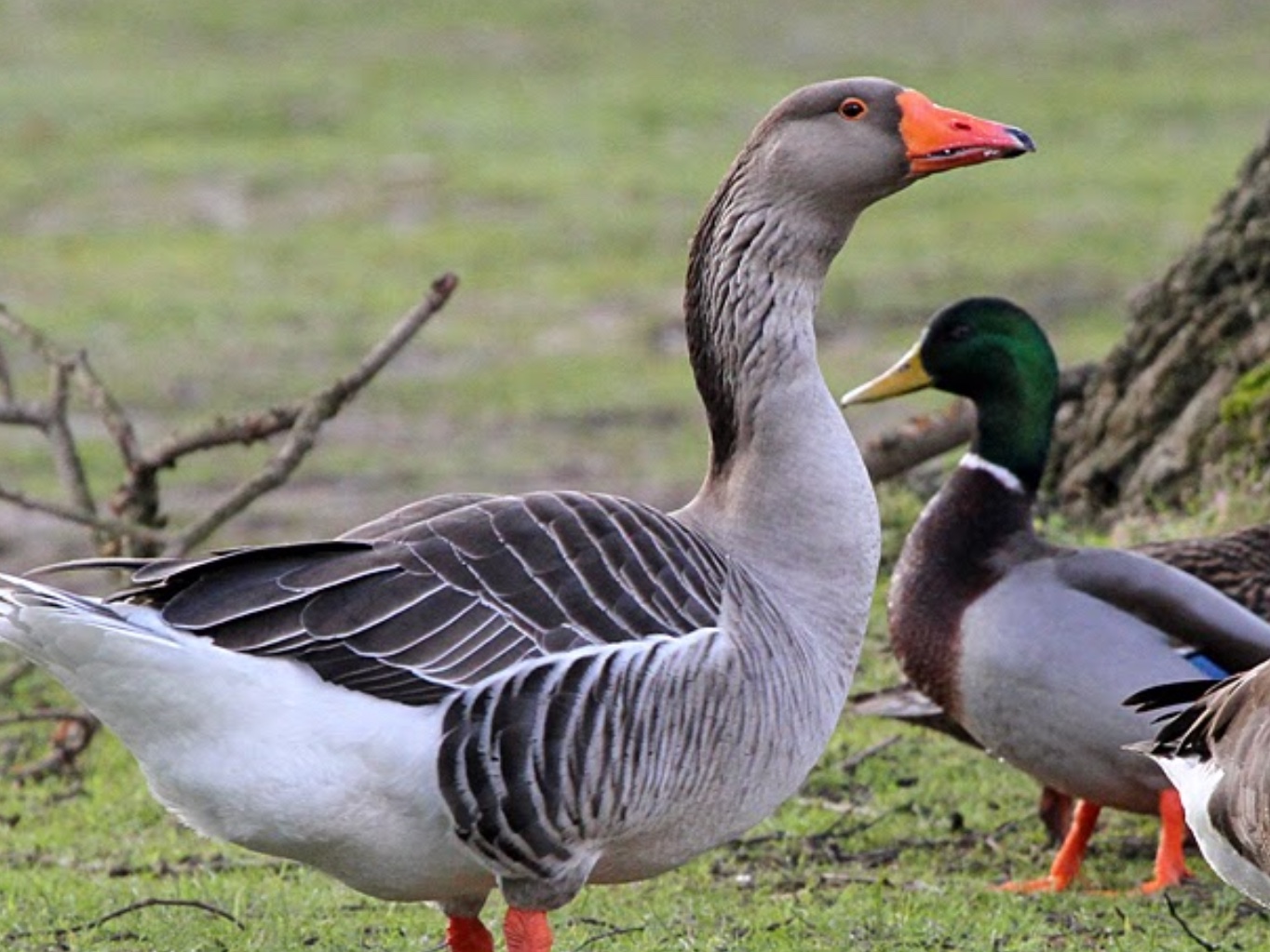 The geese are a common domestic farmyard goose, derived from a swan goose and an Icelandic grey legged breed that gives them their unique grey tint.