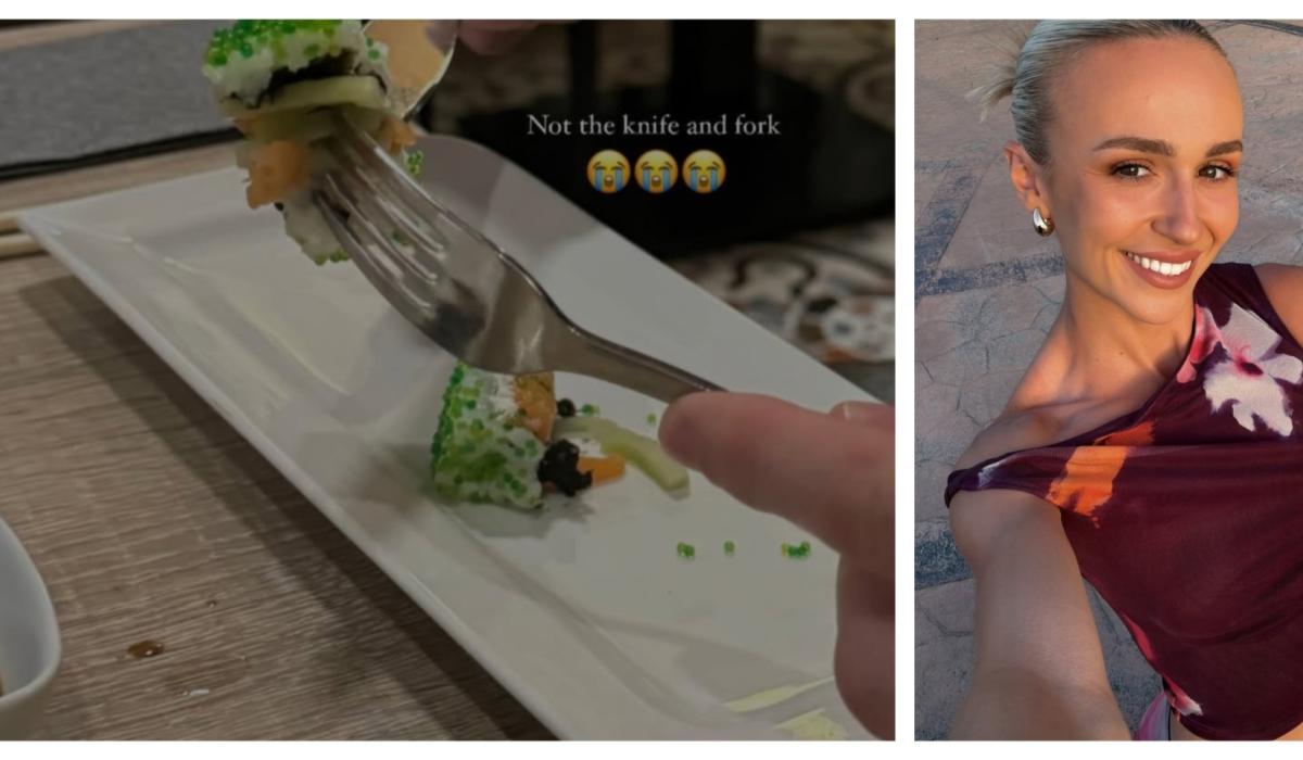 The Ballina man was caught eating sushi in an unusual way and Olympian Sharlene snapped him and posted the pic to her 274,000 Instagram followers saying "not the knife and fork". Breen will have to brush up on his chopstick skills.