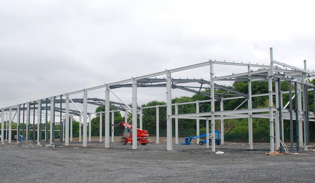 The steel skeleton of Roscrea's new recycling centre. Photo: PJ Wright