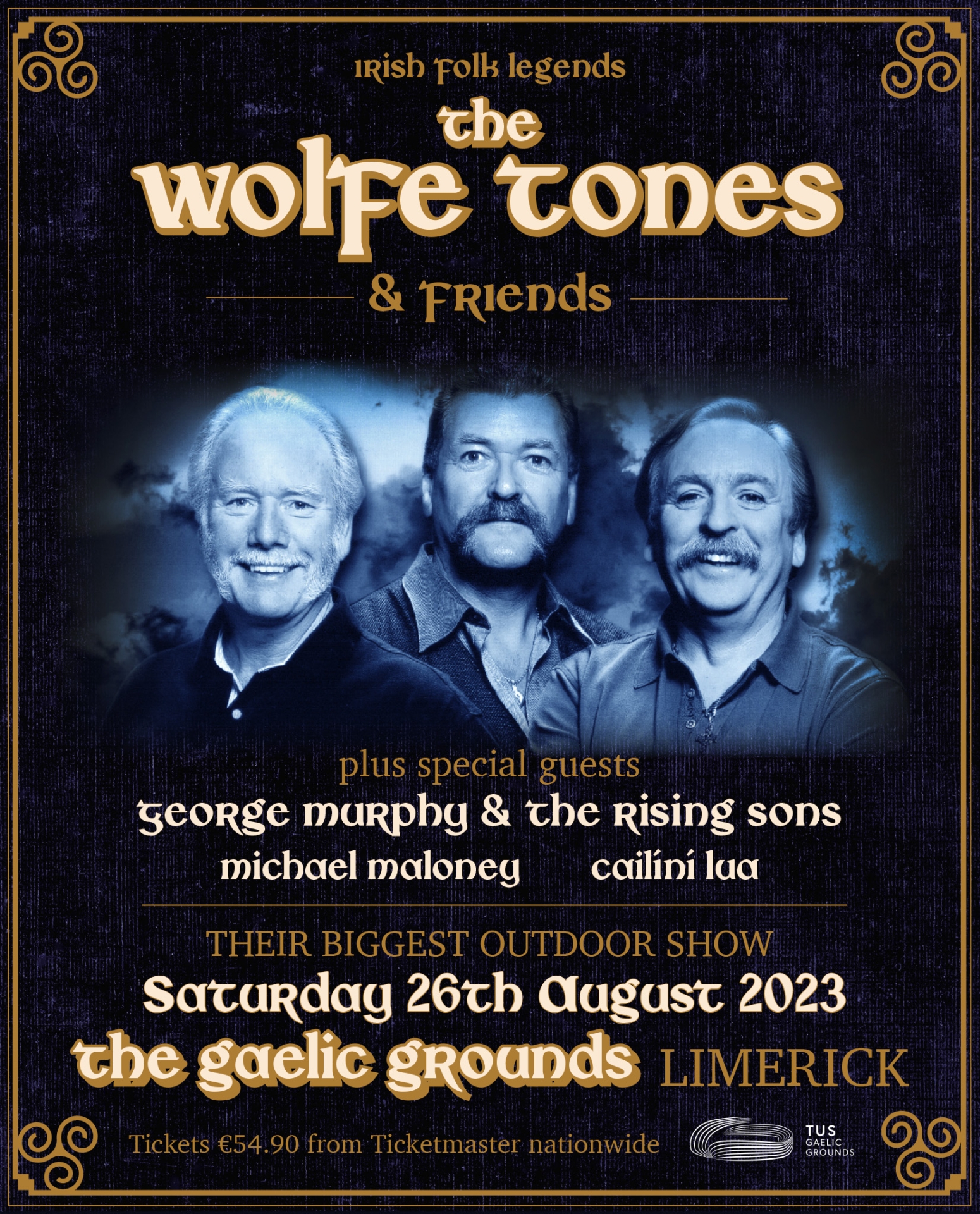 The home of the All Ireland Champions will ring to the sound of the Ireland’s biggest folk group this Summer as The Wolfe Tones have announced their biggest outdoor show for Limerick’s TUS Gaelic Grounds on August 26th this year .