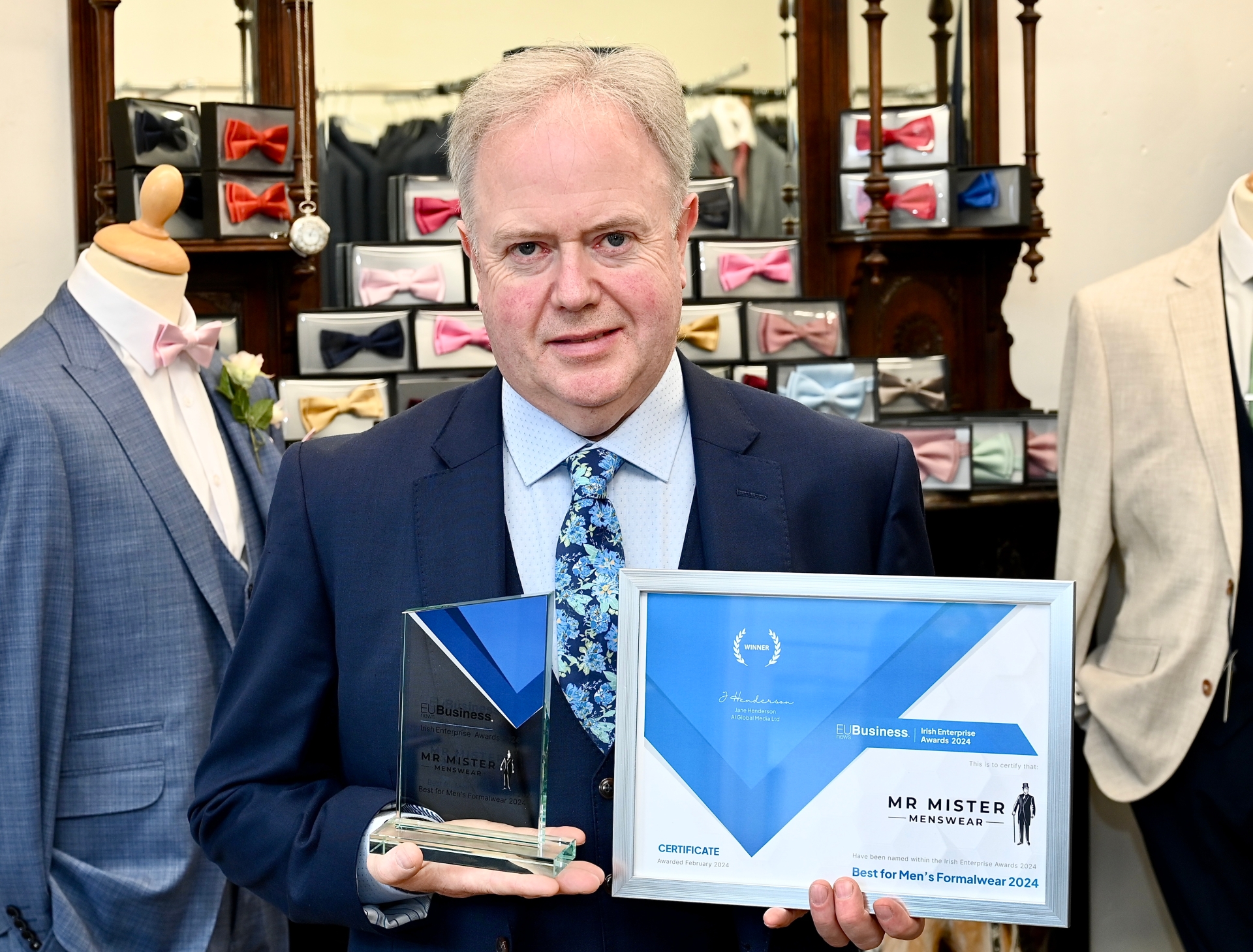 In light of this glowing praise, it is truly no surprise that Mr Mister Menswear has been named Best for Men's Formalwear in the Irish Enterprise Awards 2024.