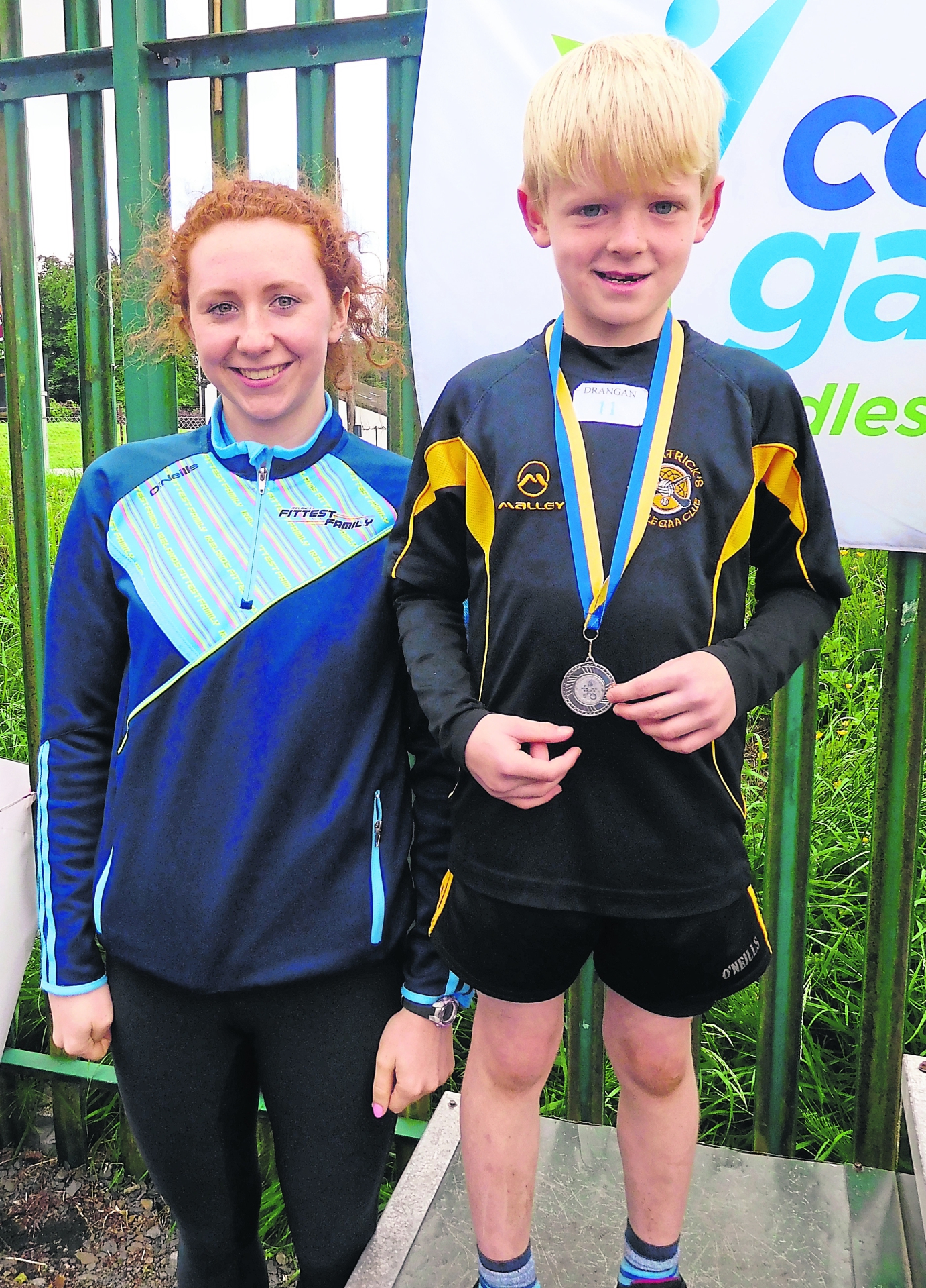 Sam Rowan, Mullinahone, who won a silver medal in the Under 12 boys long puck, with Ciara Cummins, a member of Ireland's fittest family, who was the star attraction at the Community Games finals in Templemore.