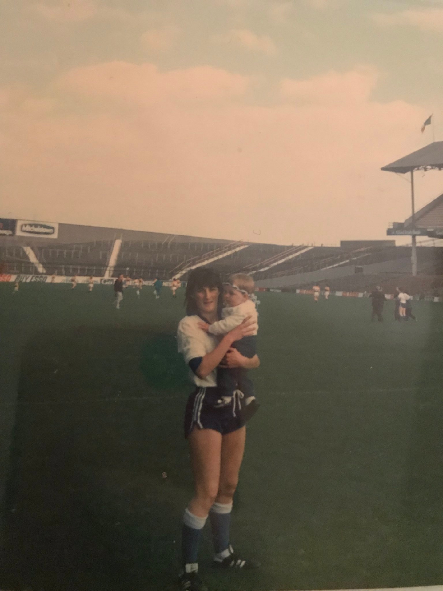 Marie Crotty carries Michelle in her arms at ten months old in Croke Park
