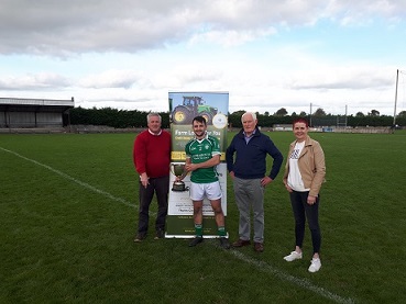 Jack Dwan, who hit 1-14 in the game for Holycross Ballycahill , accepts the Man of the Match Award