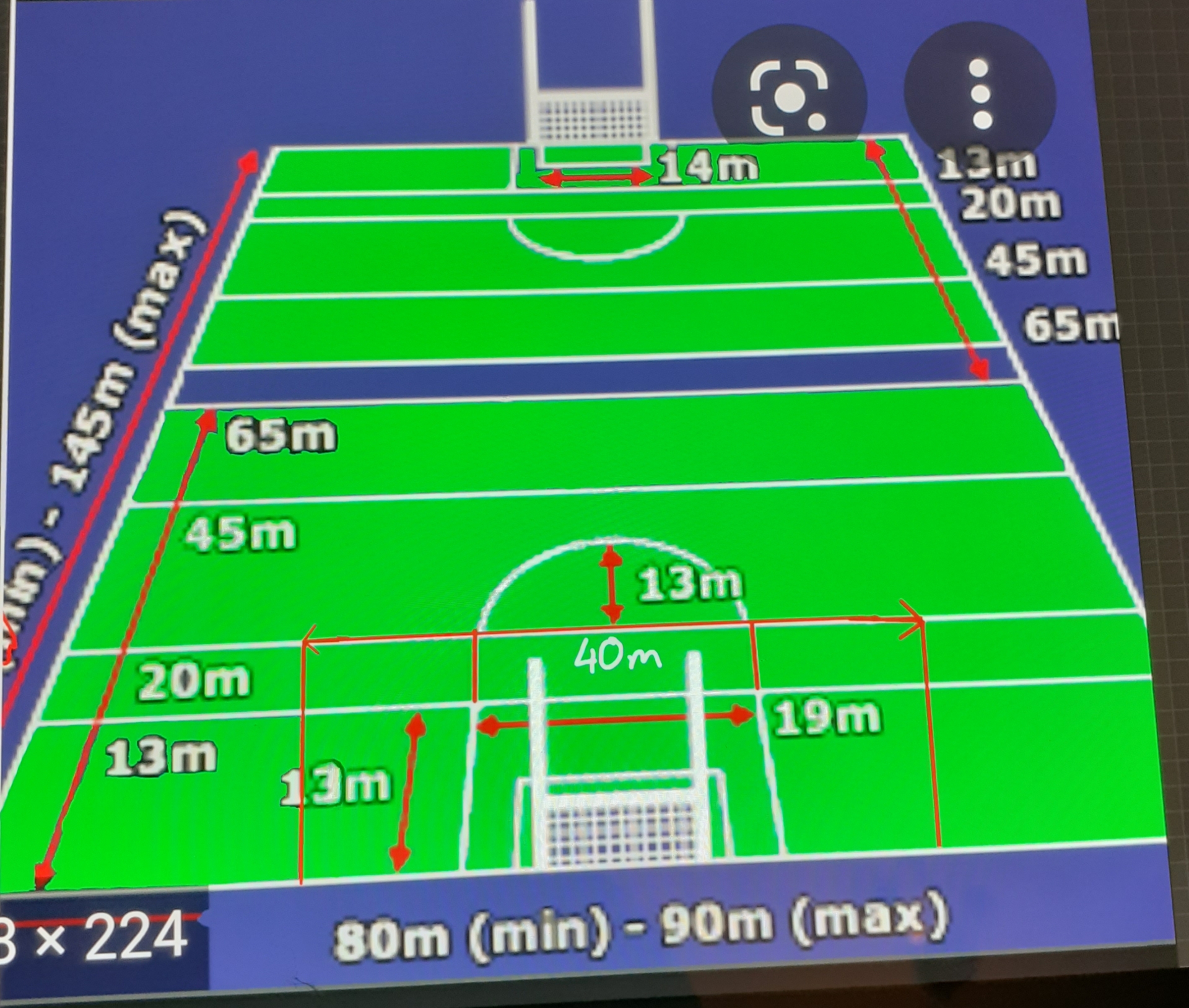 2. The 40 metre measurement width to be taken from goal posts or Centre of goal.