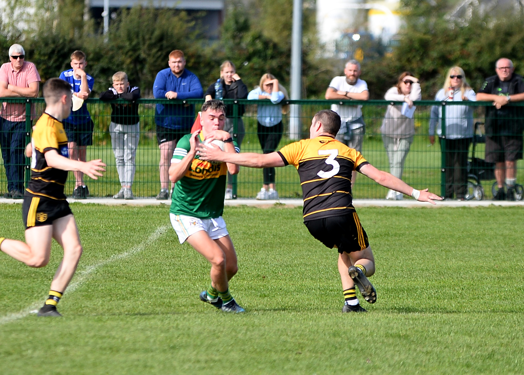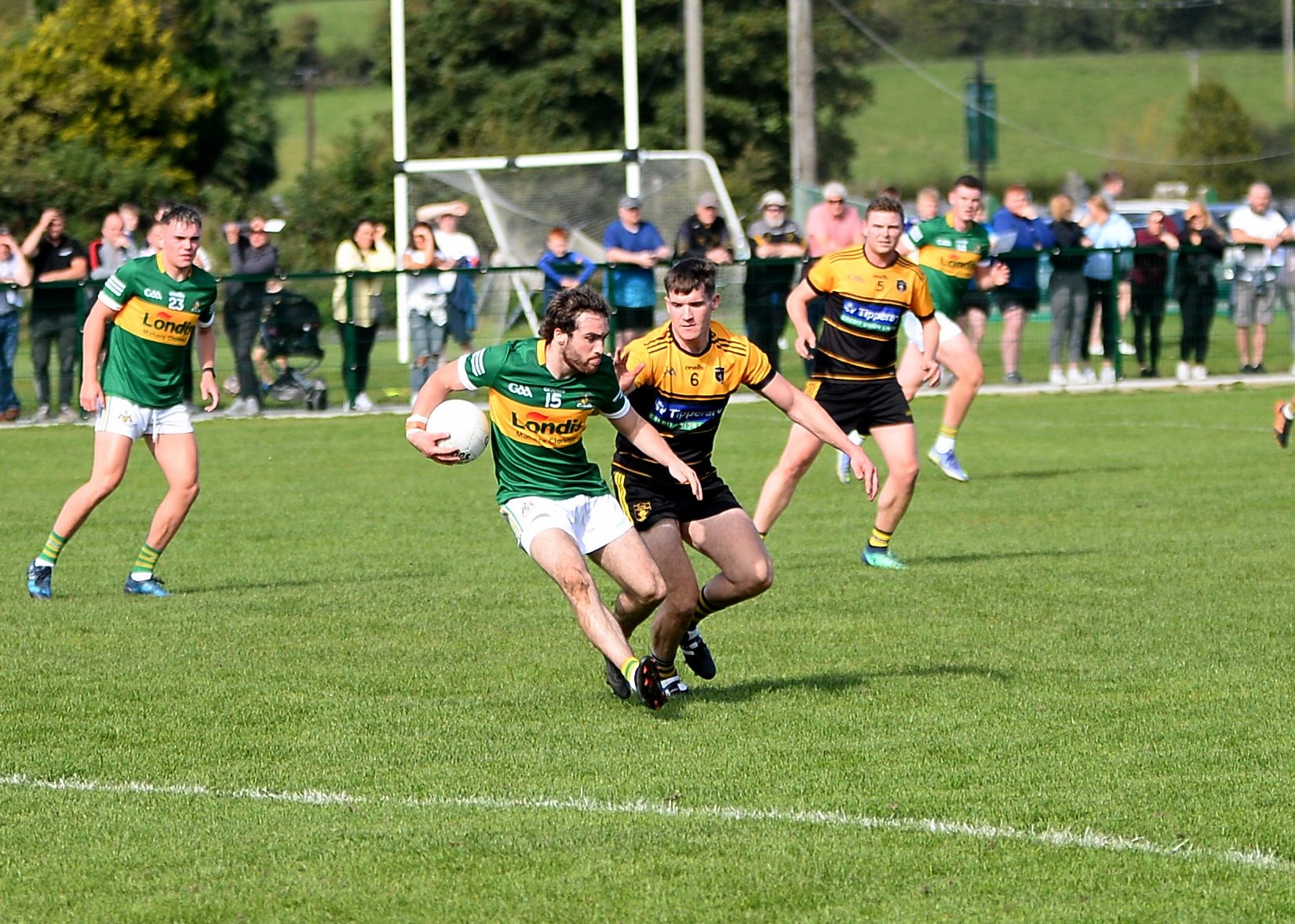 The last quarter was academic with the outcome long decided. In the 46th minute Jason Lonergan converted a free, won by the lively substitute Rory O’Dowd and the impressive Aldo Matassa who would finish strongly stretched the gap to 15 points by the 51st minute, withstanding a strong challenge before turning to score from 30 metres out.