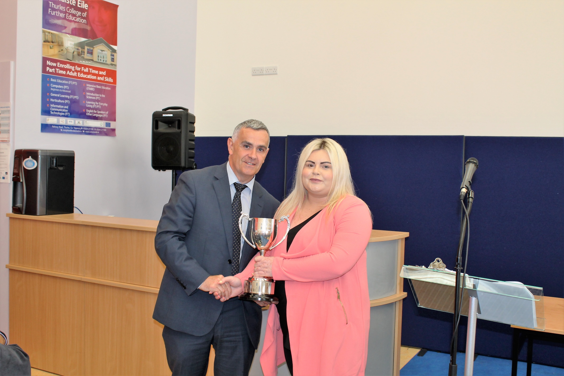 Following in the footsteps of Antoinette Delaney and Jeremiah Nolan was Karen Hickey from Kennedy Park Thurles who was the worthy recipient of the Peg Hanafin Cup and €1,000 bursary after going on to further study, completing a course in business administration.