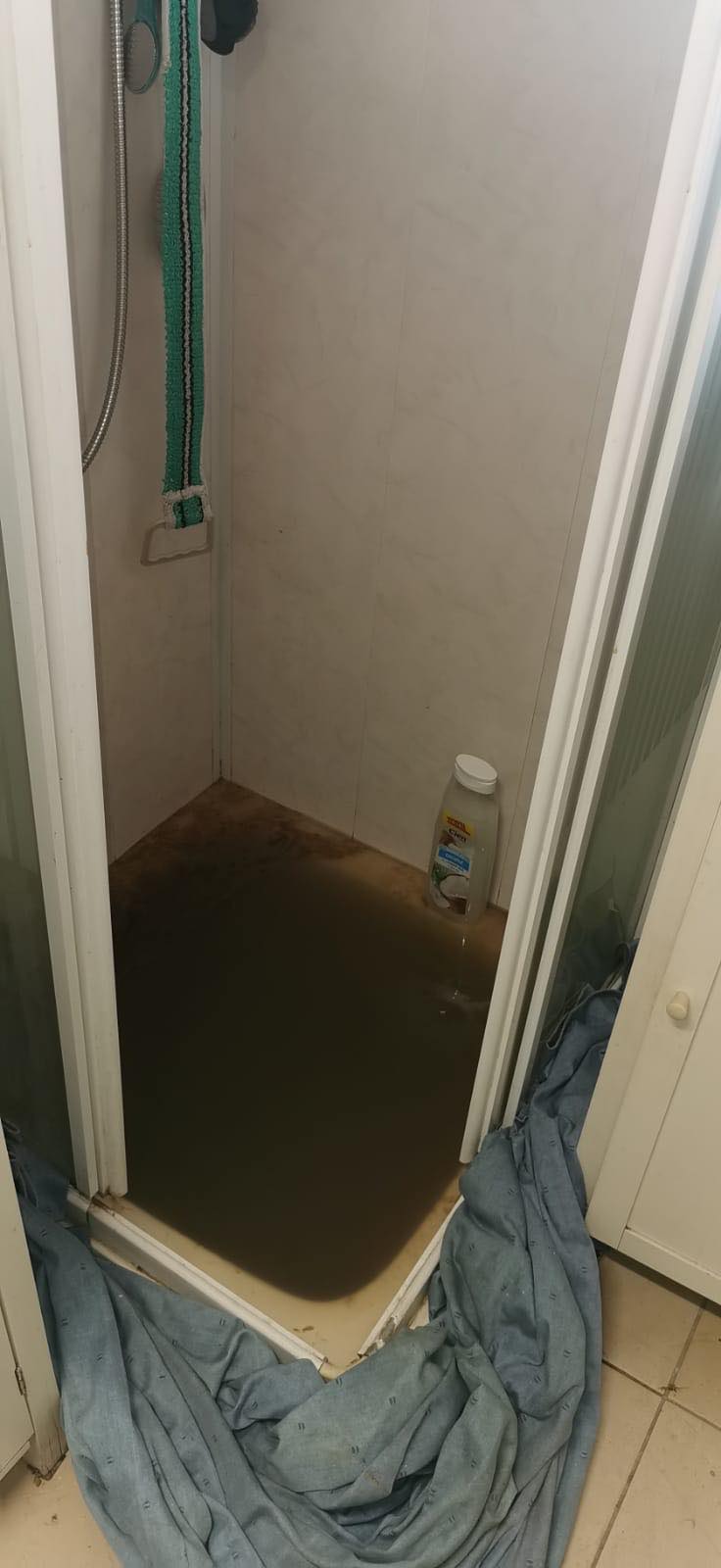 The shower cubicle of a house on the Cashel Road where sewage has come up the drain and into the bathroom