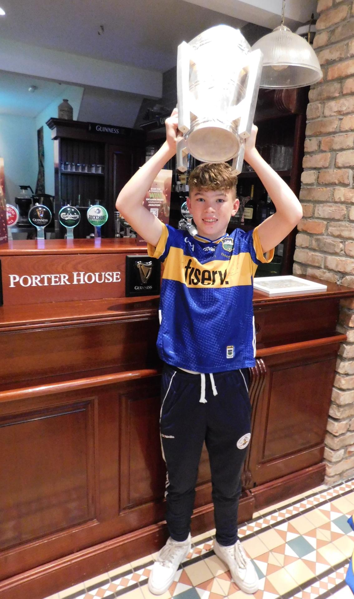 Adam raises the Liam MacCarthy Cup at the celebration night at the Porter House.