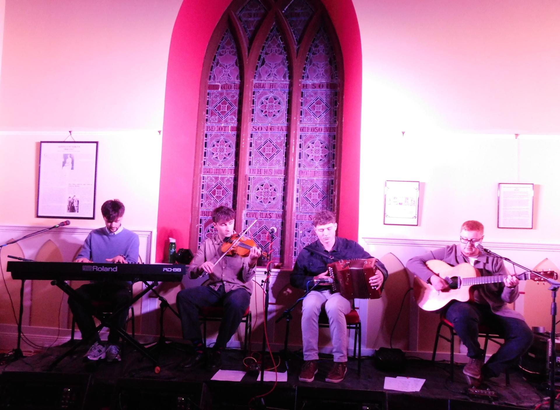 The young trad band is made up as follows; Marty Barry on guitar and vocals, Oran Kelly on button accordion, Oisín Duffy on fiddle and Aidan Quigney on keyboard.