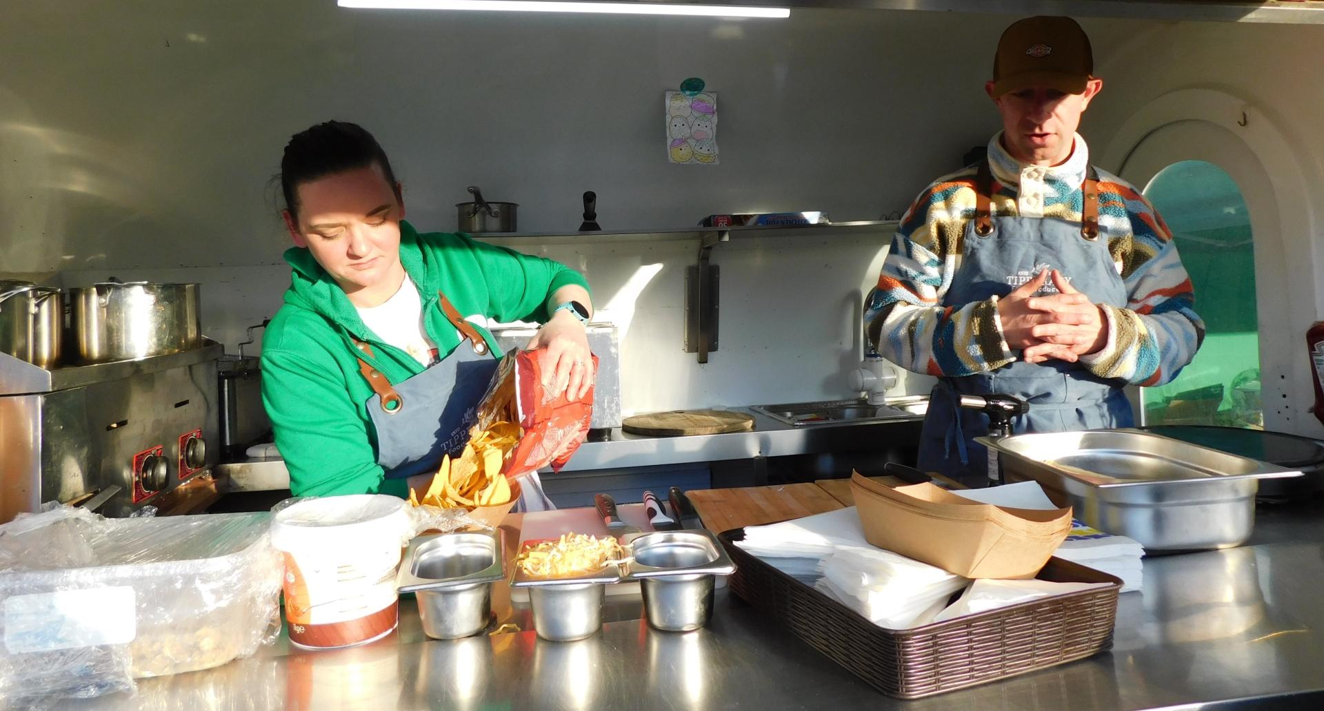 Myriam and Barry of My Street Food preparing items from their menu for the Christmas Market at the Market Yard.