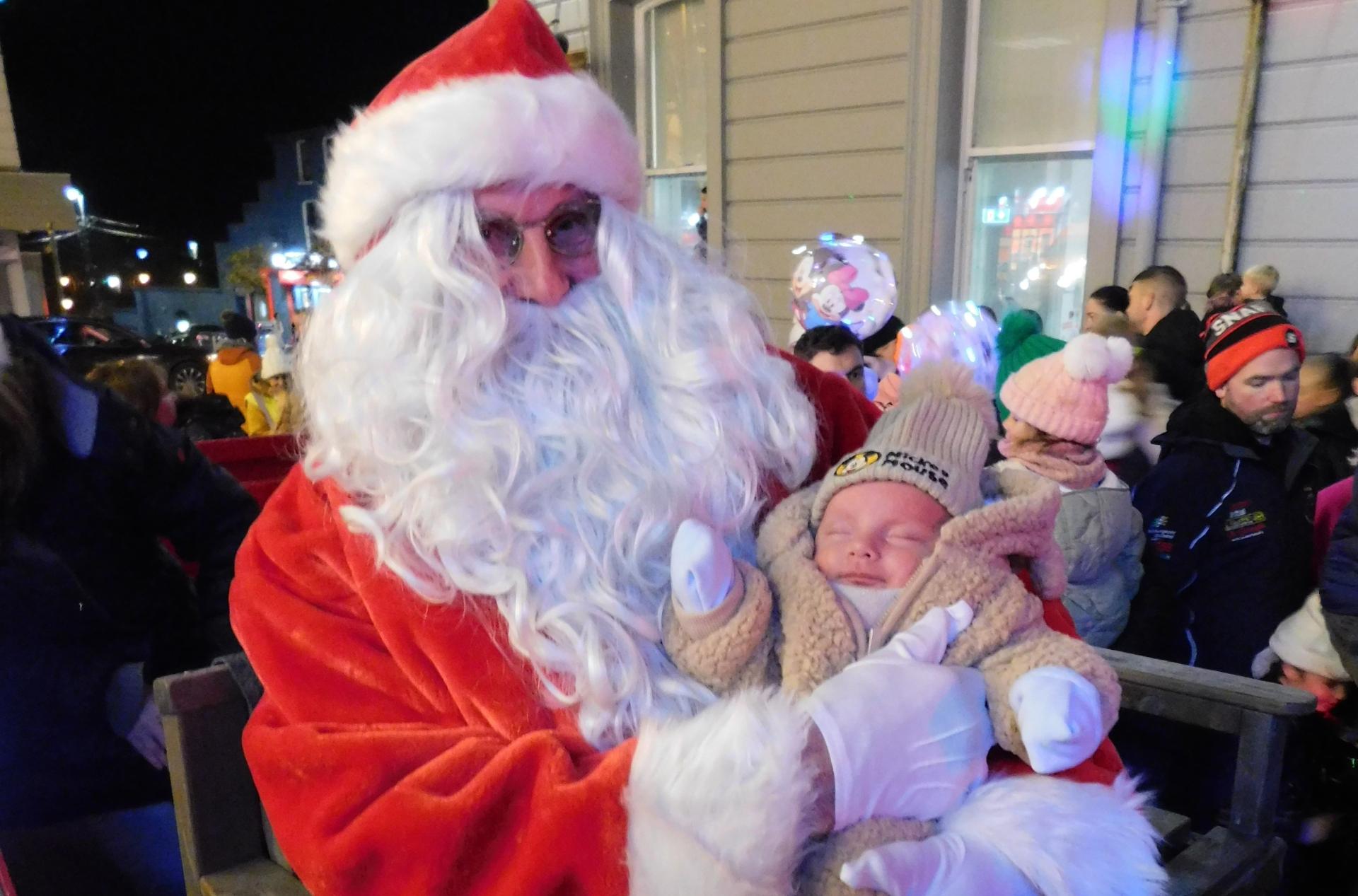 The youngest person to meet Santa Claus at the switching on of the Christmas Lights in Tipp Town.