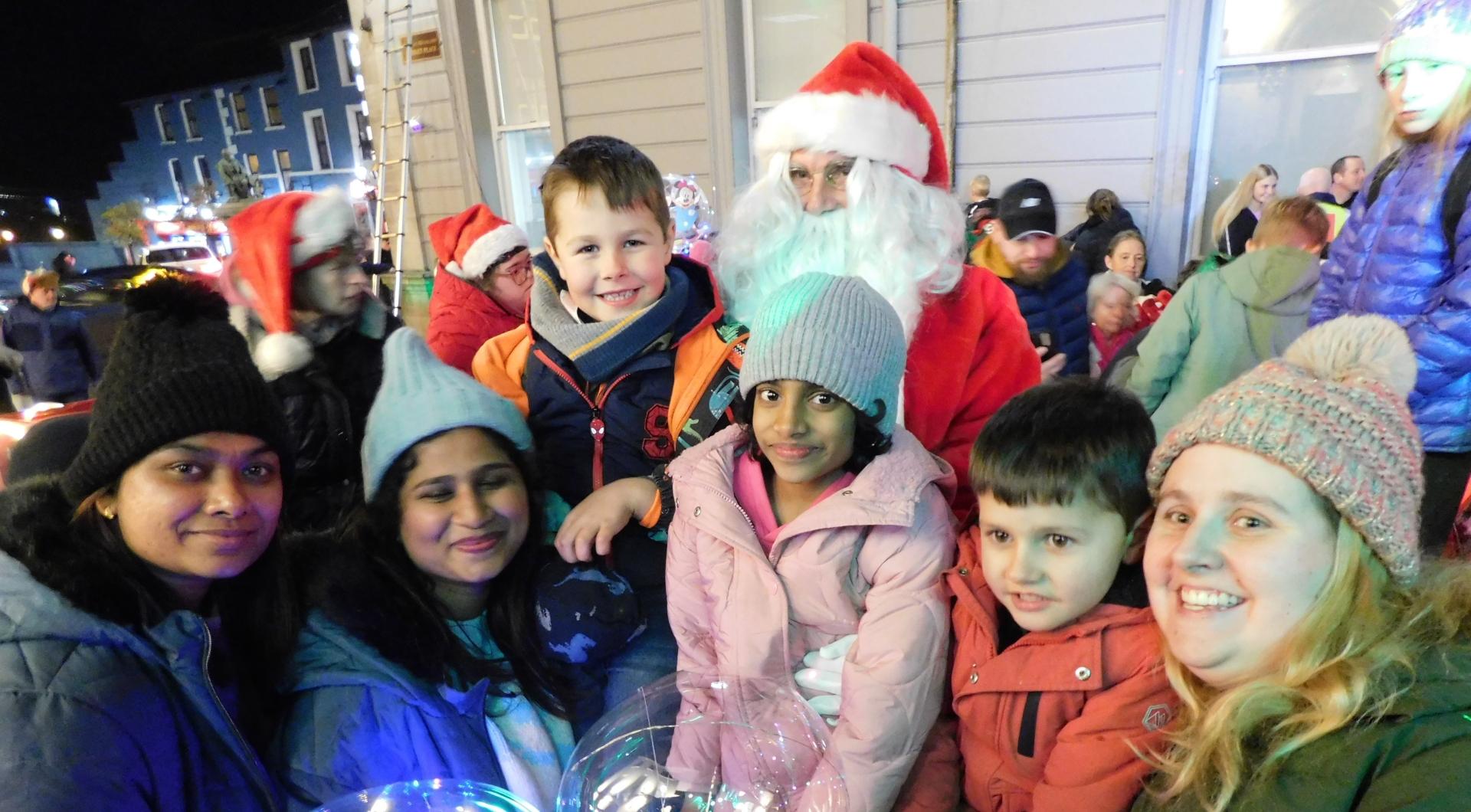 A happy group meeting Santa Claus at the switching on of the Tipp Town Christmas Lights.
