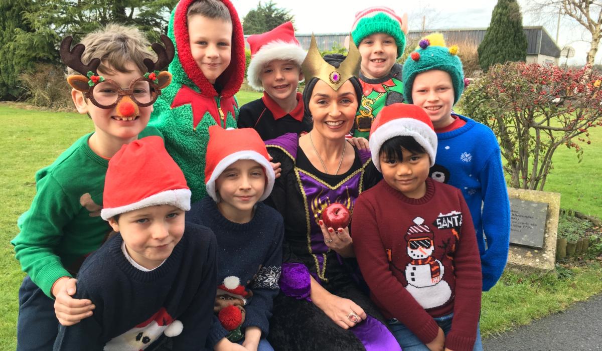Queen Belladonna visits Scoil Ailbhe to bring some Festive cheer prior to the opening of the Thurles Community Panto Snow White and the Seven Dwarfs.