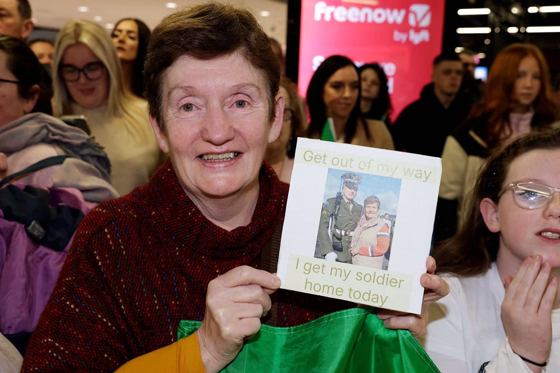 Chrissie Renehan, from Cappawhite, Co. Tipperary, awaits the arrival home of her grandson, Jack Renehan, at Dublin Airport. Photo by Conor O Mearain/PA Wire.