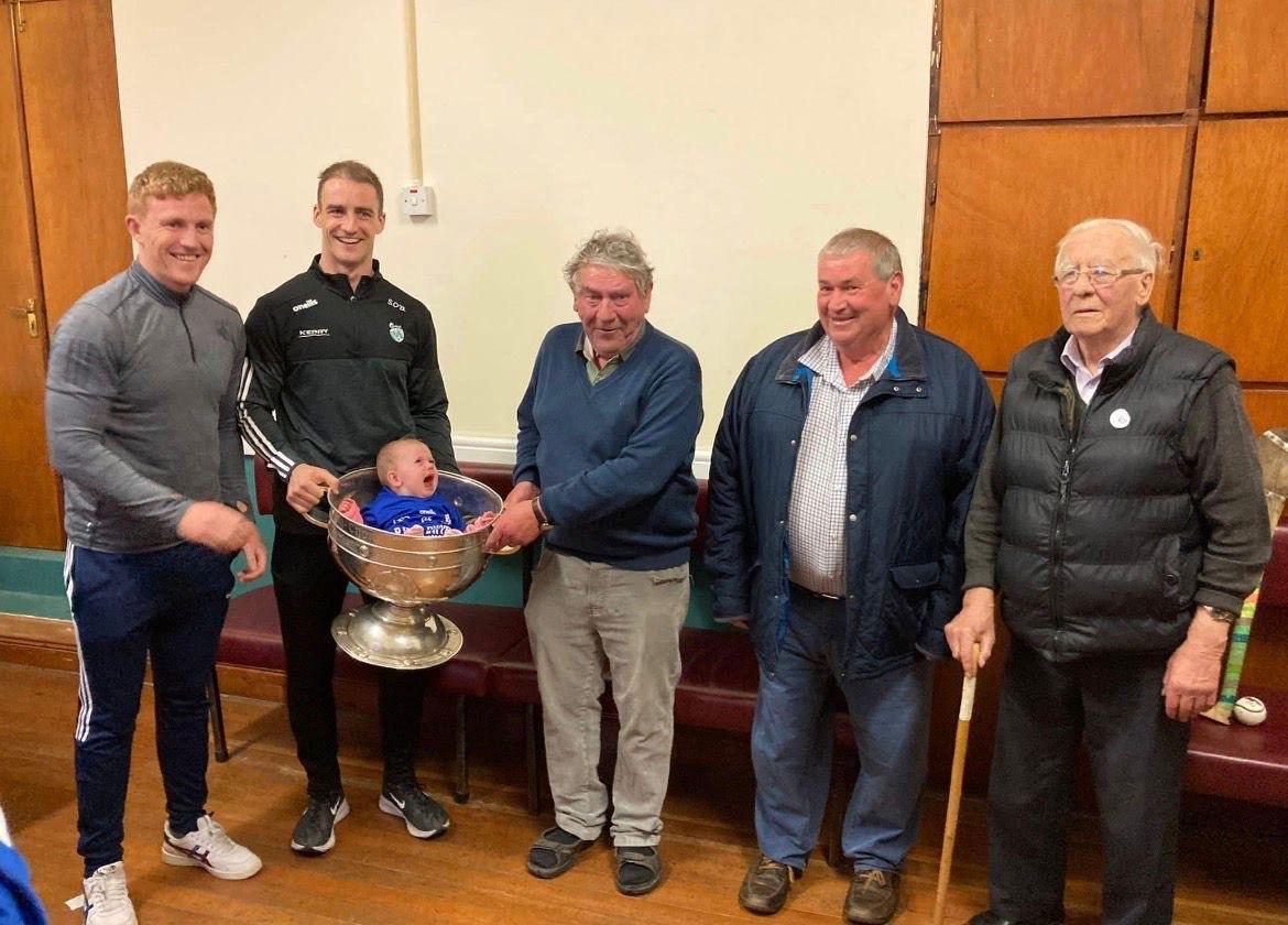 pictured with Sam Maguire… Donal, Steven O Brien (Kerry footballer), Ellie mai in the cup, PP, Tom English & DJ Gleeson (RIP).