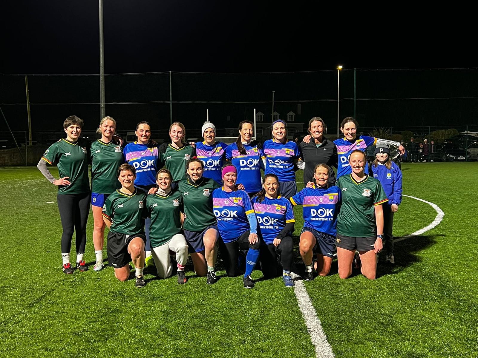 Pictured here are Goal Queens team and Golden Oldies team at the Charity Cup Ladies Final at Rosegreen Astro pitch last Sunday February 8th. Winners were the Goal Queen team.