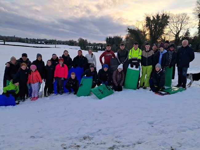 Enjoying a bit of home-made skiing on the slopes of Bannon’s field in Kilballyhemikin in Killea last week were members of the Burke, Fogarty, Hennessy, Loughnane and Bourke families.