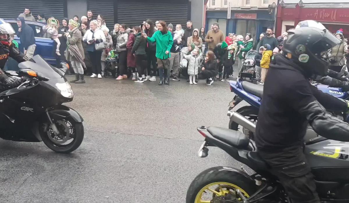 The motorcycle racing club's entry included a lorry carrying on its trailer several racing motorbikes whose drivers revelled in revving their engines. The lorry, which advertised the Faugheen 50 sprint series of races planned in July, was followed by an equally noisy fleet of motorbikes and motorised go-karts.