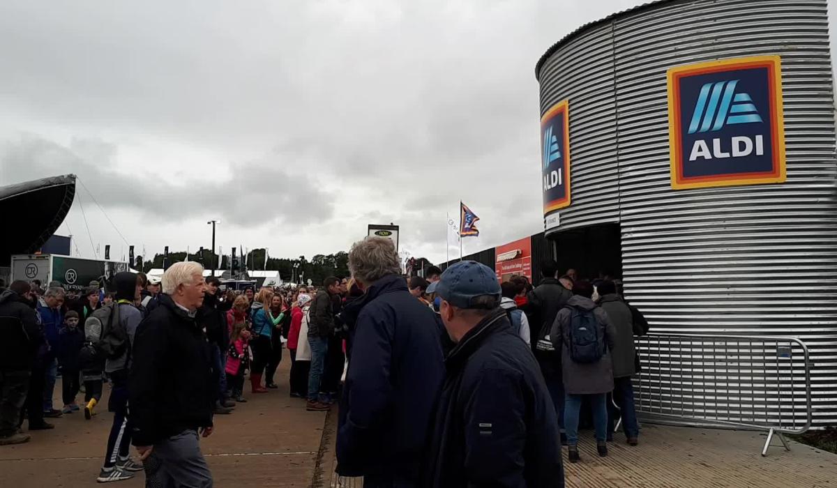 Aldi's popularity knows no bounds as thousands of people literally queue to get into their stand at the National Ploughing Championships 2018. It must be like Willy Wonka's Chocolate Factory inside!