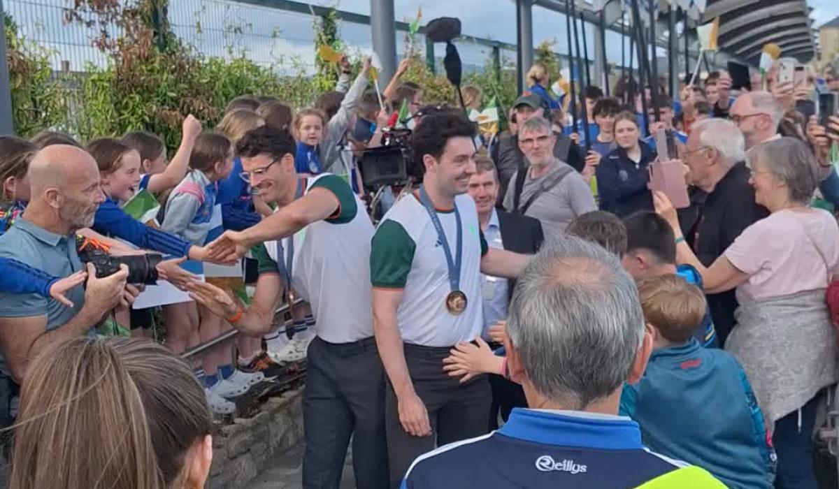 Proudly wearing the bronze medal he won in Paris, Daire and his double sculls partner Philip Doyle, were given a rapturous welcome by thousands of people who packed the Kickham Plaza to pay a fitting tribute to Daire Lynch.